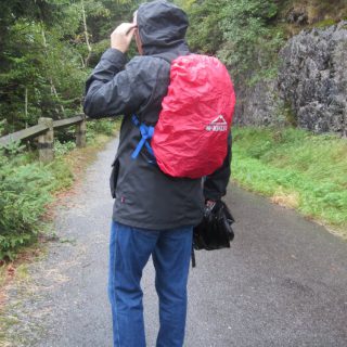 Nicht ganz so lustig war die Tatsache, dass es auf dem Weg nach oben anfing zu regnen. Ich holte meine Regenjacke aus dem Rucksack, so schlimm war es schon…..