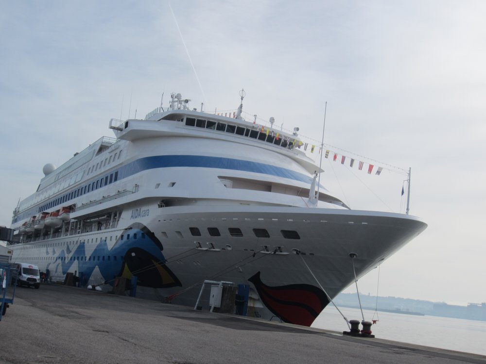 Nach dem Absacker im Hotel -alte Leute halt 🙂 – ging es ins Bett. Den nächsten Morgen sind Frauchen und ich dann nach dem Frühstück durch Kiel gegangen. Die knapp 600 Mtr. entfernte „Cara“ besuchten wir auch, wollten wir doch ein paar Stunden später an Bord gehen. Um 11:00 haben wir das Hotel dann verlassen und sind mit Koffer zum Terminal der Cara gegangen. 25 Minuten (!) später waren wir eingecheckt und konnten total entspannt dem Auslaufen und Mittagessen entgegen schauen. Tipp für alle Anreisende: kommst du früh, kannst Du früh an Bord gehen, meist schon ab 11:00 Uhr.