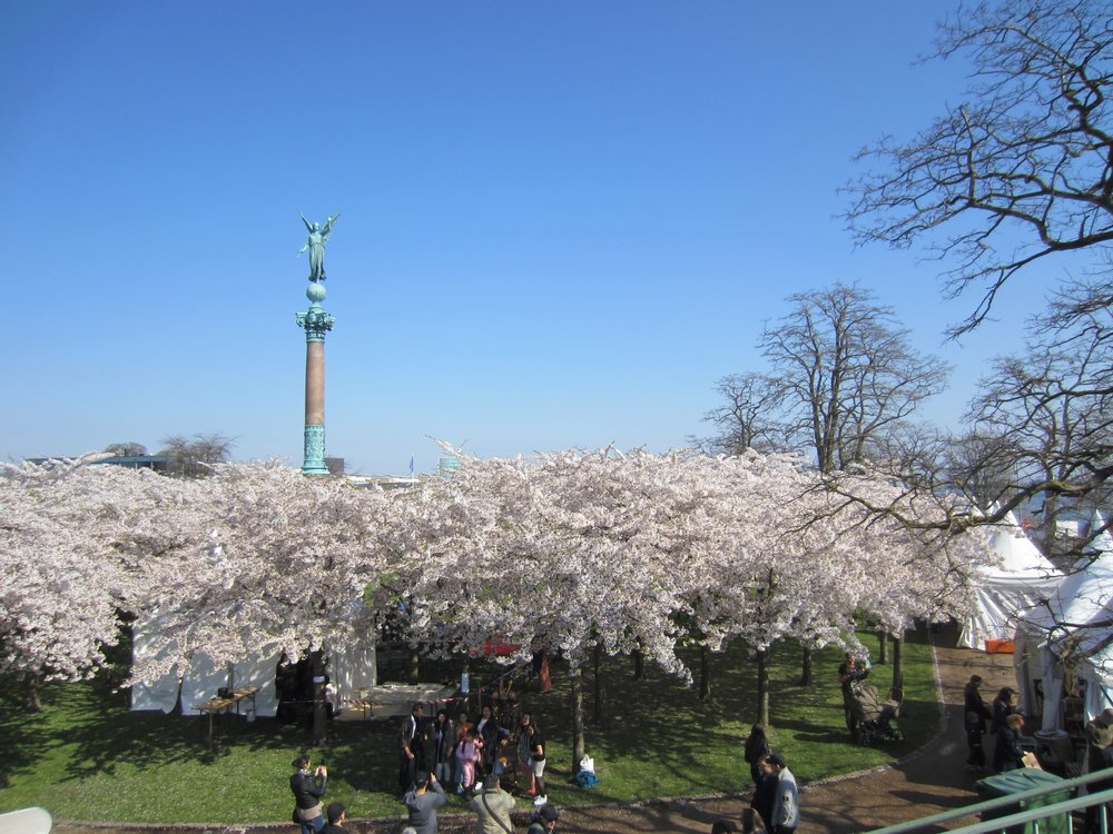 Was wir überhaupt nicht auf dem Plan hatten: es ist SAMSTAG!!! In den Gärten zum Schloss Amalienborg hin war Japan-Fest, die Kirschblüte war sensationell in vollem Gange, guckst Du Bilder schön hier: