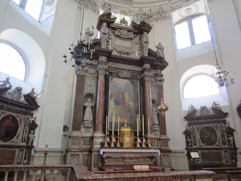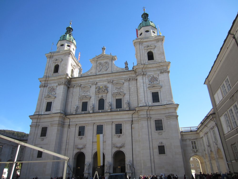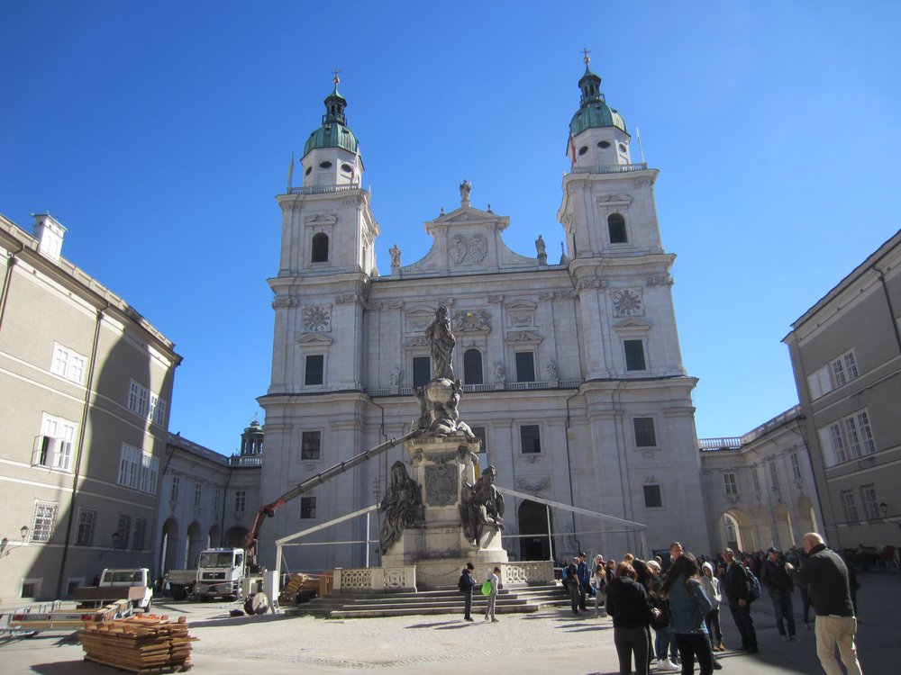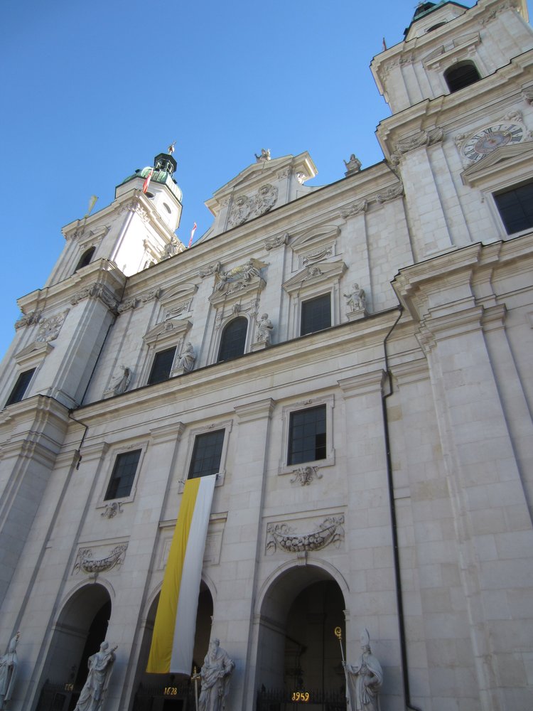 Wir kamen rechtzeitig an der Busstation an, vom Dom sind es ca. 20 Minuten, mit Birgit 5 mehr (der Fuß). Ein mehr als schöner Tag mit diesem tollen Ausflug nach Salzburg! Und wir mussten uns um nichts kümmern (Parkplatz, Hin-/Rückfahrt, Orientierung etc…), genial für 13,– €!