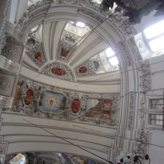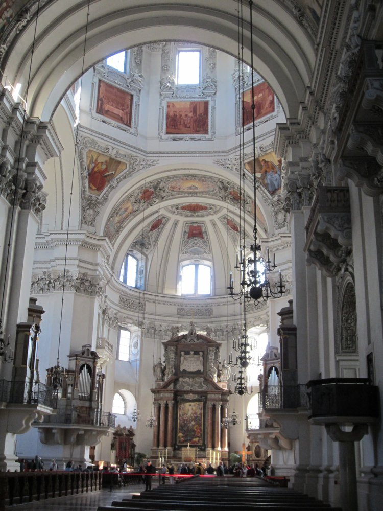 vor unserer Abfahrt gestern ins Sauwetter haben wir noch die Bustour gebucht via Anruf. Also stiegen wir pünktlichst um 9:40 an der ARAL -Tankstelle in den Bus und ließen uns mit Infos gespickt nach Salzburg chauffieren 🙂 Der Bus war bis auf 4 Plätze voll. In einer fremden Stadt machen wir es meist so, dass wir uns eine Führung beim Fremdenverkehrsverein organisieren bzw. buchen. So auch hier und es hat sich echt gelohnt! Für 5,–€ die Nase -Sonderpreis für Bustouris- hatten wir gute 1,5 Std. eine sehr interessante Stadtführung inkl. Besuch des Domes mit Erläuterungen. Er war mehr als beeindruckend und so sehr bebildert, wie wir es noch nicht gesehen hatten! Die Führung endete vor Mozarts Geburtshaus und wir beschlossen zunächst eine Kleinigkeit zu essen, auf der Rückseite war Markt mit allerelei Essenständen. Guckst Du Bilder bis hierher: