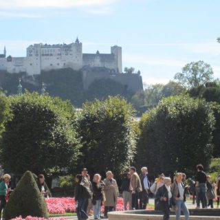 Das war schön! Wir setzten uns am Ende des Garten noch ein Weilchen in die Sonne und genossen es. Nach dem Mirabellgarten hatten wir die Qual der Wahl: rauf auf die Festung, für die man mind. 2-3 Std. einplanen sollte (der Bus fuhr um 16:30 ab, das wird knapp) oder irgendwo ein schönes Örtchen finden und einen Happen essen und trinken……. 🙂