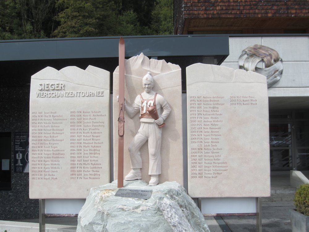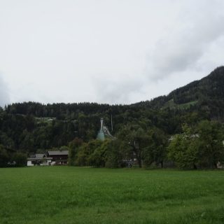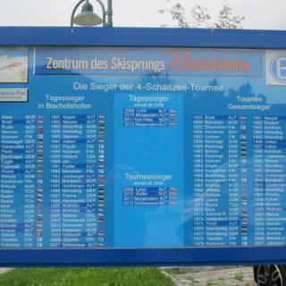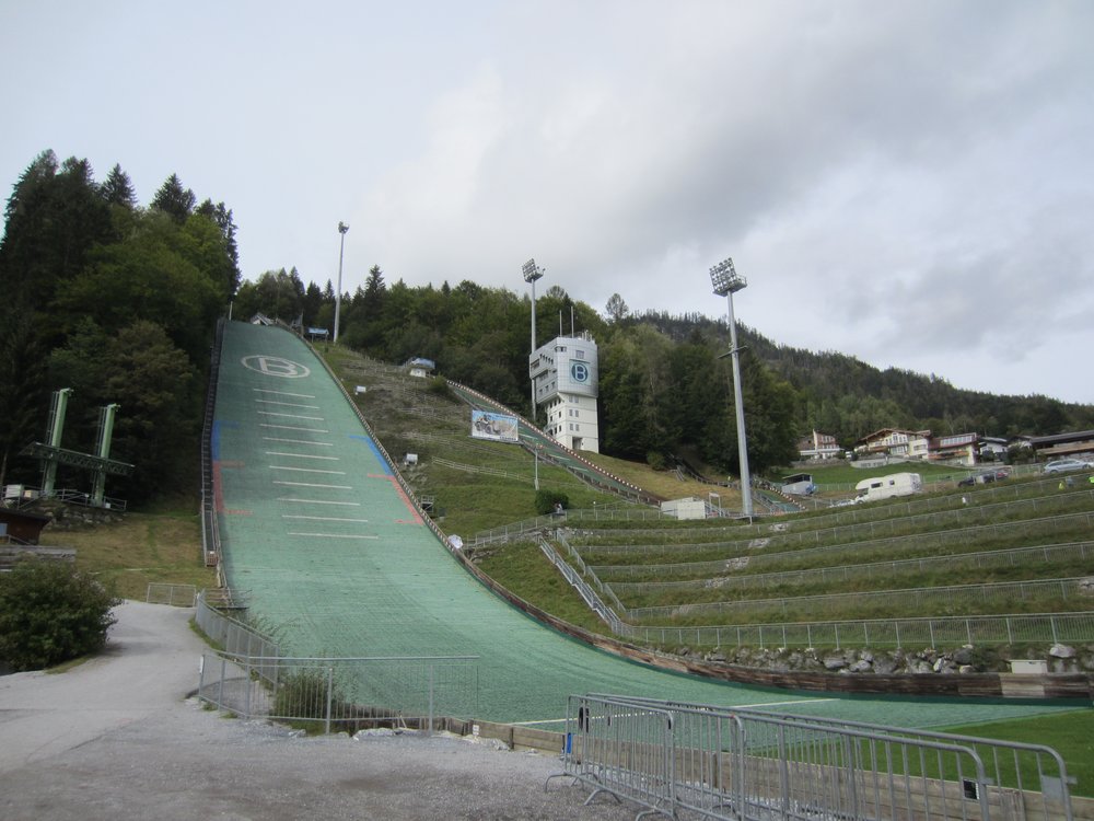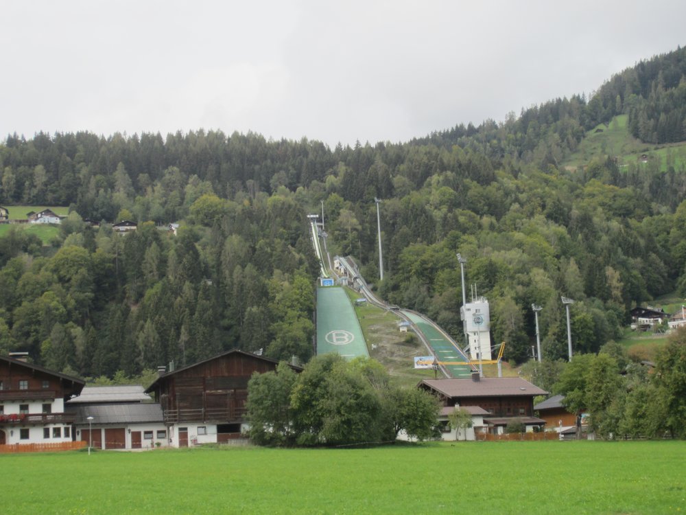 es ist abgekühlt, nur noch ca. 13°C heute früh, mit Aussicht auf knappe 20°C. Heute sind wir etwas später los, bekamen noch neue Handtücher, ein Birnchen für die Küchenlampe und ’ne neue Batterie für die Wohnzimmeruhr. Also dann los nach Bischofshofen (http://www.bischofshofen.com ), wo es einiges zu entdecken gab. Wir wollten unbedingt die Sprungschanze sehen, auf der zum Ende der Vier-Schanzen-Tournee das Abschlussspringen stattfindet. Nach gut 1,5 Std. Fahrt kamen wir an und fuhren einem kleinen grünen Sschild nach, wo „Sprungschanze“ drauf stand. Es ging durch Wohnsiedlungen, Zone 30 und irgendwann sollte es auf einem Schotterweg weitergehen. Nicht mit uns! Also rückwärts raus und gedreht, Richtung Hauptstrasse. Die fuhren wir dann bis zum Ende des Ortes und dort ging es -Parkleitsystem- zum P6, Sprungschanzenparkplatz 🙂