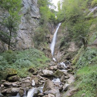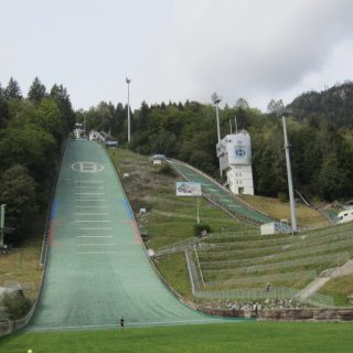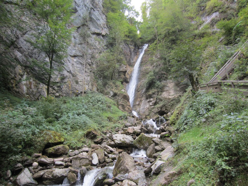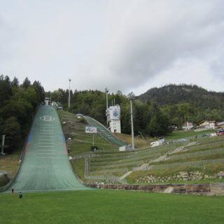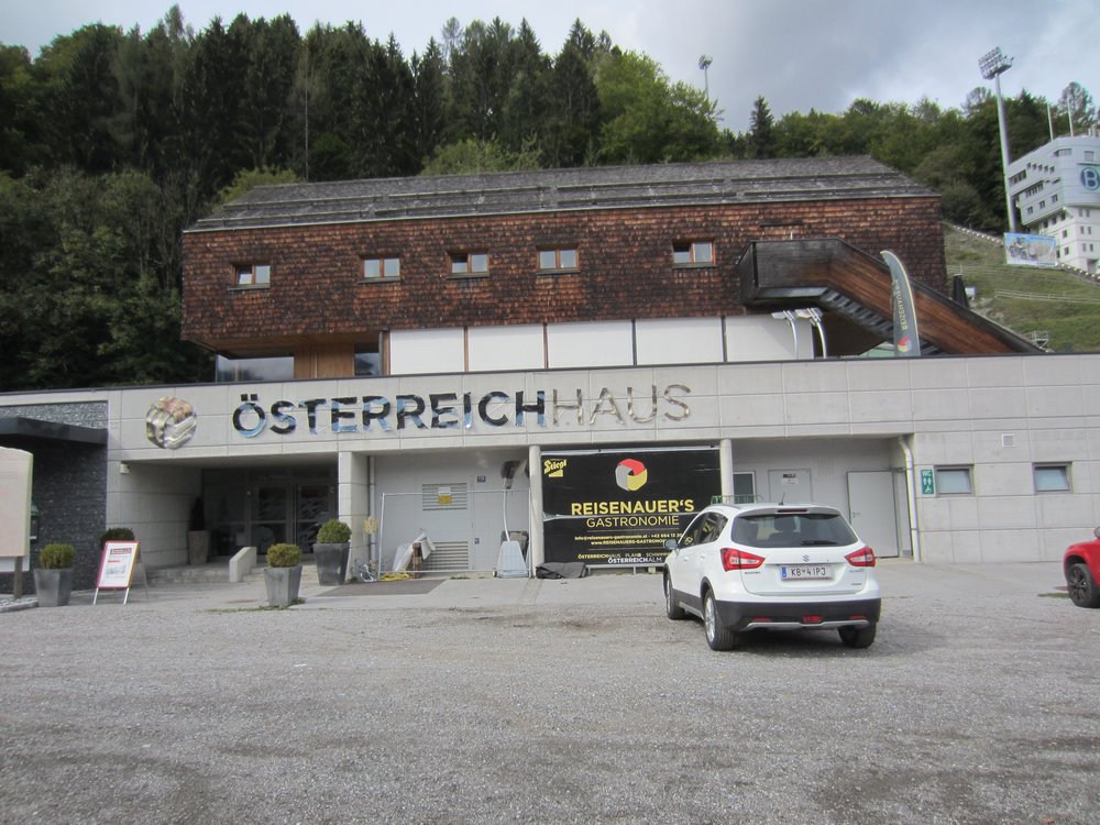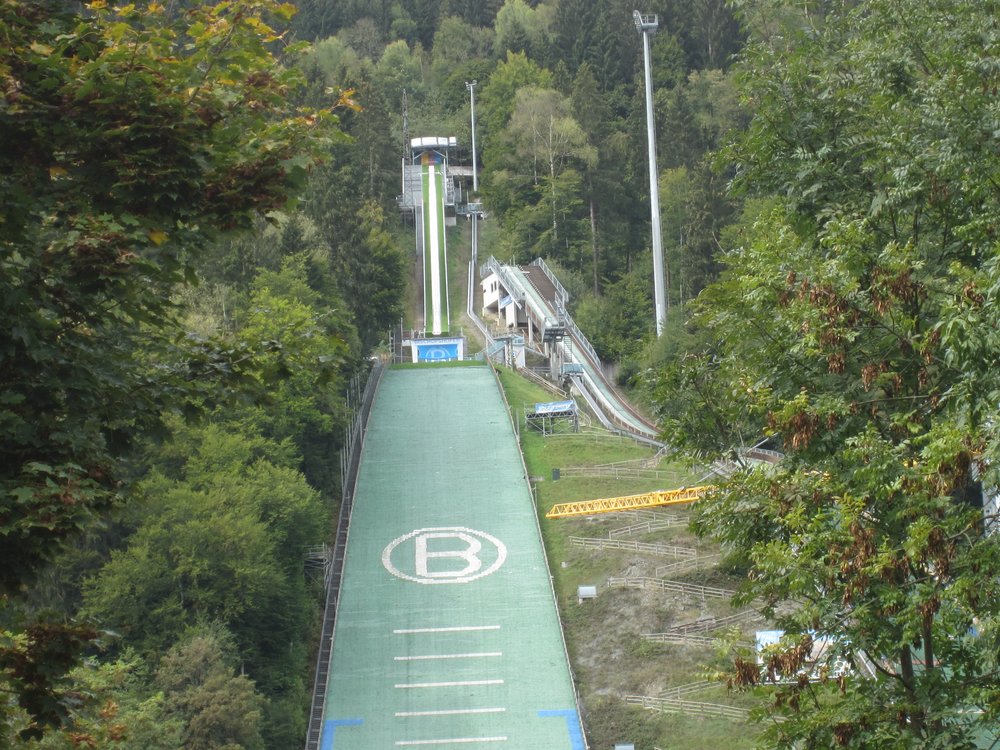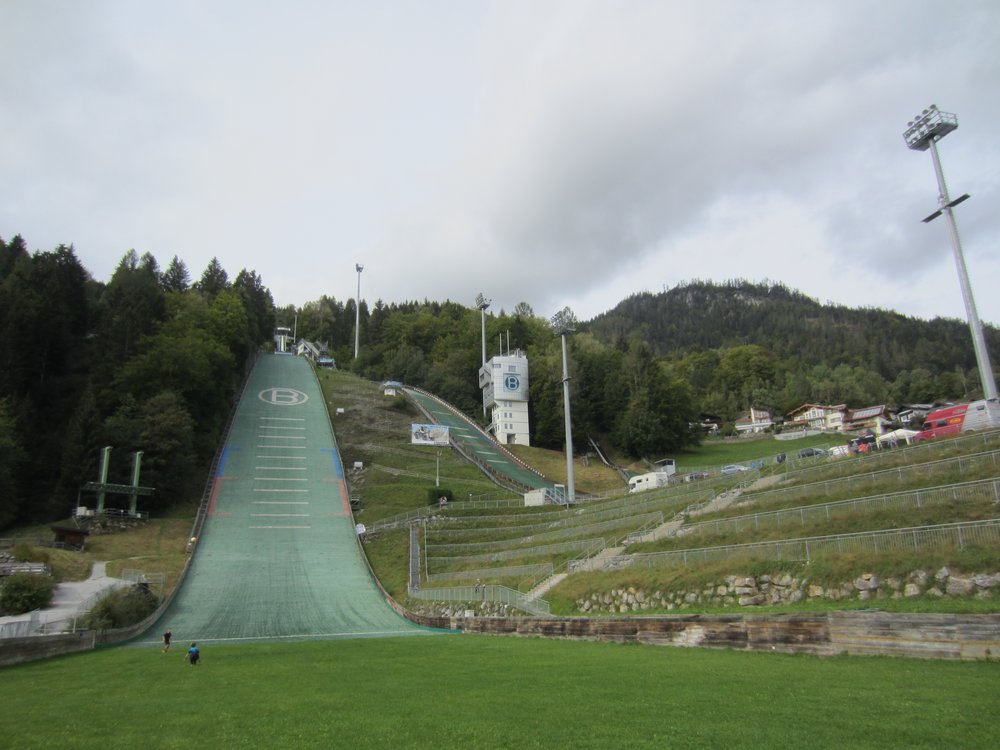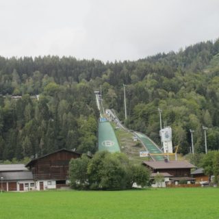 Nachdem wir ja schon so Sprungschanzen wie Holmenkollen, Garmisch und Oberstdorf gesehen hatten, waren wir schon enttäuscht über dieses hier. Mehr als mickrig und irgendwie habe ich kein „Stadion“ erkennen können. Als wir kamen hatten dort gerade der Nachwuchs -ab ca. 6 Jahren schätzen wir- eine Wettkampfveranstaltung. Letzter Springer flog ca. 18 Mtr. weit konnten wir noch hören. Gesehen haben wir nichts, weil es vorbei war, als wir die Anlage erreichten. Naja. Rechts daneben ging es einen Fußweg in den Wald zum Wasserfall, den Gainfeldwasserfall (http://www.bischofshofen.com/de/sehenswuerdigkeiten/wasserfall-natur.html ). Die 355 Stufen nach oben sind wir nicht gegangen, aber auch von unten konnten wir genug sehen und hören 🙂