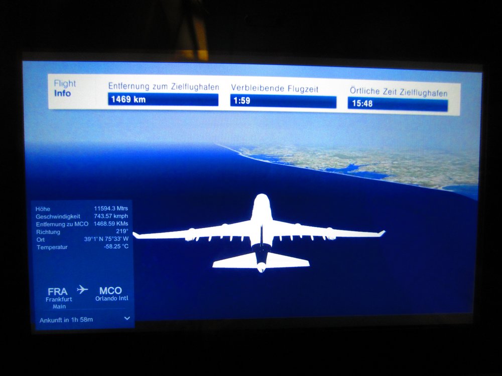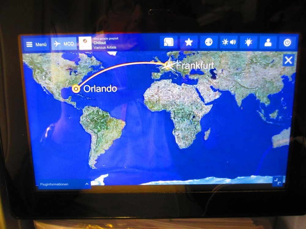 Im Jumbo war es echt voll, man hatte uns einen 1,90 mtr. großen Mann (Pakistani) hingesetzt. Leider kennt man dort wohl kein Deo, bei der ersten Gelegenheit tauschte ich meinen Fensterplatz mit Birgit, um sie aus der „Müffelzone“ herauszuholen. War nicht so schön. Ansonsten war der Flug ruhig, das Essen gut und die Unterhaltung auch. Wir starteten mit ca. 30 Minuten Verspätung, brauchten dafür aber nur 9:30 Std. zu fliegen. In Orlando angekommen, dauerte die Einreiseprozedur ca. 45 Minuten, echt schnell für amerikanische Verhältnisse…..
