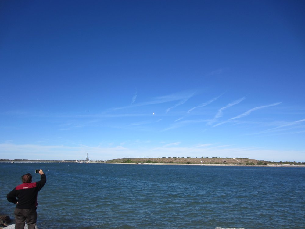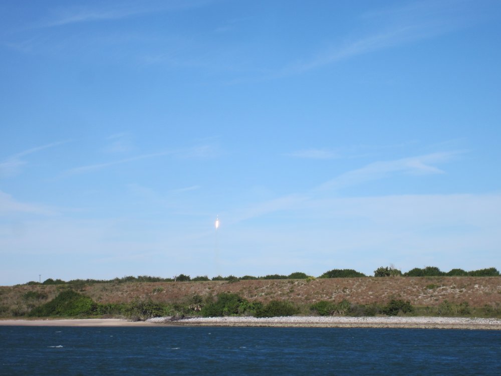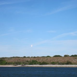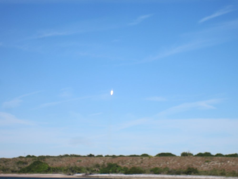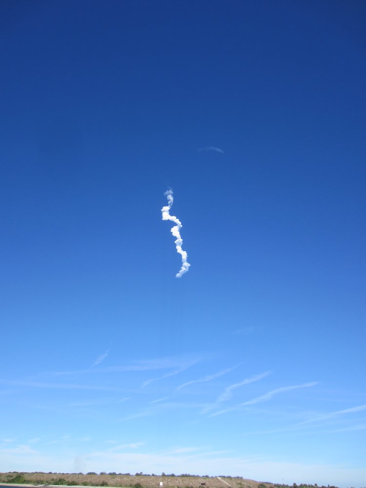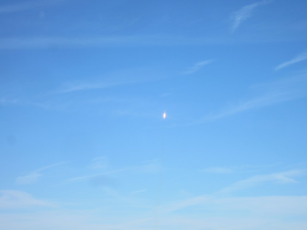 Von gestern auf heute verschoben, bei strahlend blauem Himmel ging die Rakete los. Das Beste: nach knapp 5 Minuten kam die esrte Stufe wieder runter und wurde -gesteuert- dort gelandet, wo die Rakete startete, begleitet mit einem lautem Knall.