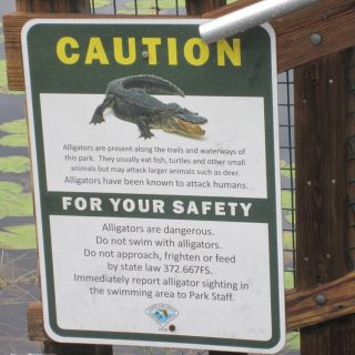 Auch eine Wasserschildkröte haben wir gesehen. Aber dass es auch hier Krokodile –bzw. Alligatoren- geben könne, hätte ich nicht gedacht. Dann sahen wir das Schild am Steg……