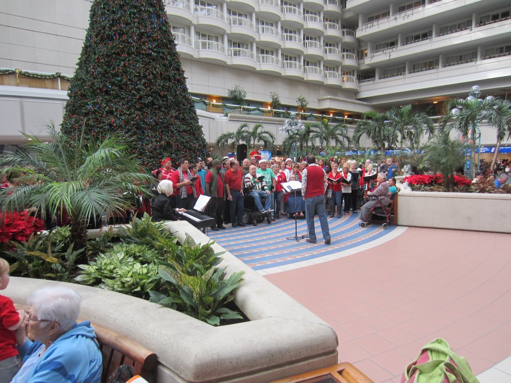 Während wir auf das Taxi warteten, hatten wir bei KOA leider keine gute Leitung für’s Internet. Dann eben auf dem Airport. Der Transfer ging schnell mit ca. 45 Minuten und so standen wir nun gegen 12:40 auf dem Airport. Der Flieger ging um 20:20 Uhr. Während wir so warteten, fing hinter uns ein Chor an Weihnachtslieder zu singen, die Leute standen drumherum und auch wir fanden es sehr schön. Nach diesem Konzert, das gefühlte Stunden dauerte, kamen dann gegen 17:00 Uhr die Jazzmusiker zum Einsatz. Dieser Airport ist echt schön, im Wartebereich vor der Sicherheitsschleuse gaaaanz viele Shops, auch von Dinsey und Co. sind dort alle vertreten. Hier noch die finalen Bilder vom Innenraum des 31 Ft.-Monsters und vom Airport, guckst Du: