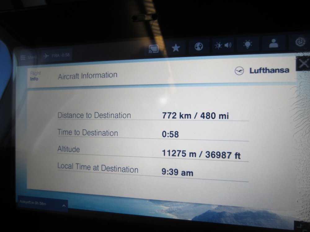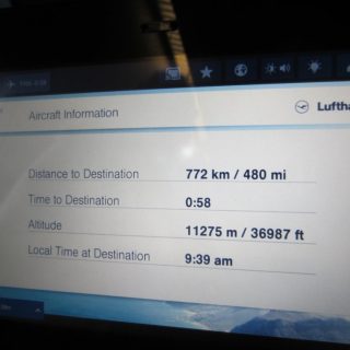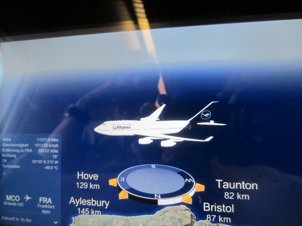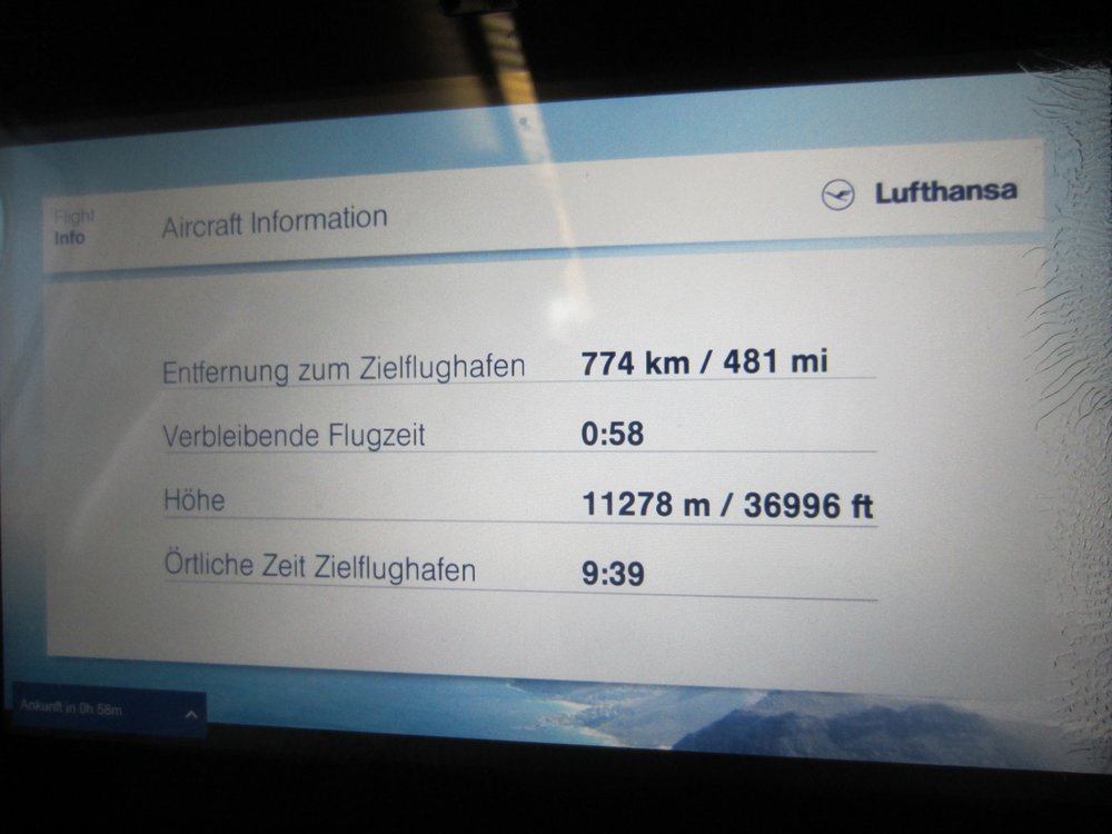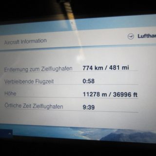 Im Flieger dann die extra großen Beinfreiheitssitze eingenommen, ging es auch schon los. Angenehme Überraschung: der Flug sollte nun „nur“ noch 7:50 (statt der avisierten 8:50) Stunden dauern, das sitzen wir doch auf einer Backe ab 🙂 .
