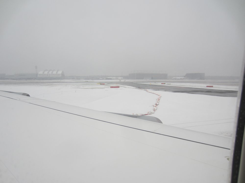 Den zeilichen Vorsprung -es war dann eine gute halbe Stunde- haben wir leider wieder eingebüßt. Weil wir „zu früh“ waren, war der Andockplatz am Terminal noch besetzt. Naja, was soll’s. Die Koffer waren unter den letzten 10, wir hatten ja schließlich sehr früh eingecheckt. Draußen haben wir dann noch im Schneetreiben gebibbert und ca. 15 Minuten auf den Transferbus vom NH-Hotel gewartet (es ist die Nummer 1 von 3, die alle zu unterschiedlichen frankfurtern NH-Hotels fuhren). Nach guten 5 Minuten Transferzeit dann im Hotel zur Tiefgarage ins Auto und ab nach Hause. Hier die Bilder vom Flug und der Ankunft, guckst Du: