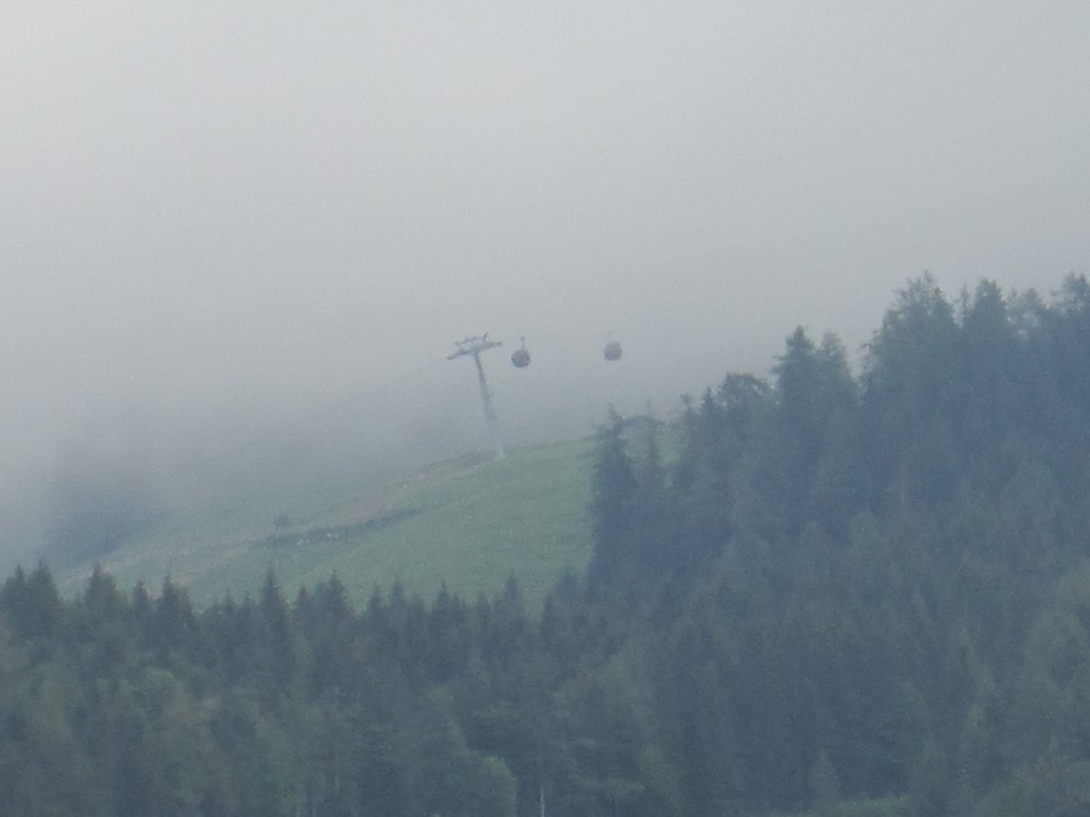 Wir nahmen um eins den Bus und saßen 20 Minuten später im „Jennerkaser“ und aßen Mittag (Käsespätzle für mich und Teufelstoast für Frauchen), hat bis Abends gereicht 🙂 Der Jenner lag total verdeckt in den Wolken, guckst Du Bild oben. Die Seilbahn schien ins „Nichts“ zu fahren.