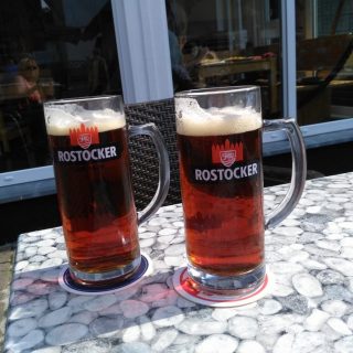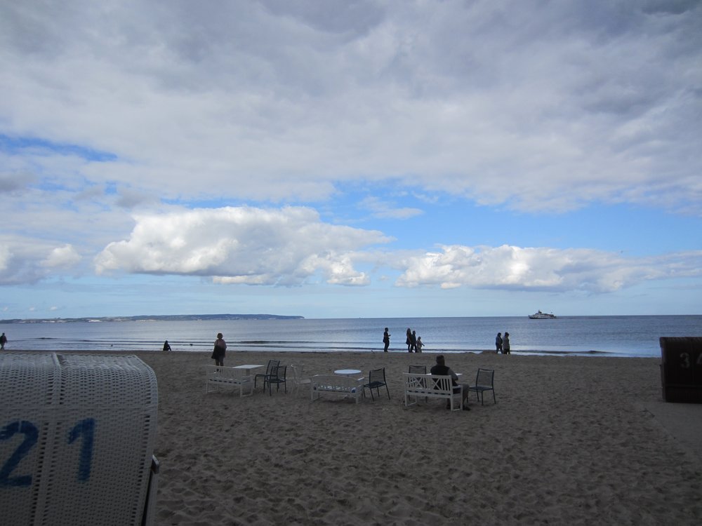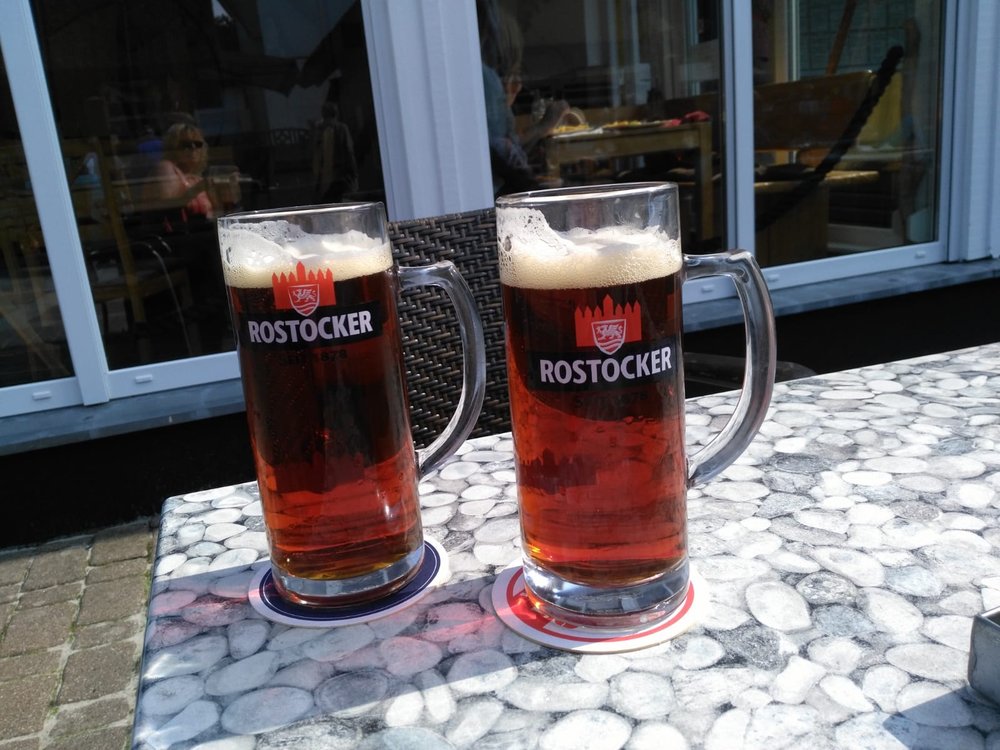 Mittags bekamen wir einen sehr leckeren, frischen Backfisch mit dem dunklen Kaltgetränk. Wir planten evtl. noch einen zweiten Strandtag und Freitag dann nach Rügen. Die freundliche Bedienung im Binnen & Buten riet uns von Freitag ab, da wäre Wochenendverkehr etc. Wir überlegten nicht lange und planten also nun für Donnerstag Rügen. Ein Muss: Kreidefelsen mit Kaiserstuhl, Prora, Baumwipfelpfad, Seebad Binz etc……