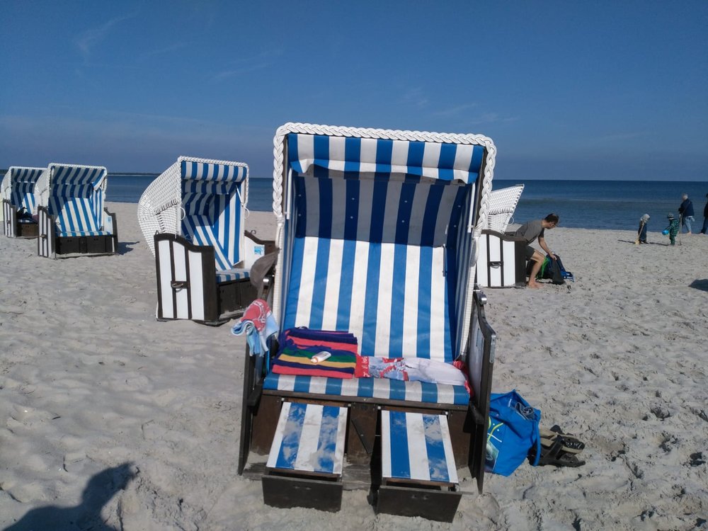 Mittwoch sollte es so schön werden, dass wir einen Strandtag planten. Gesagt, getan 🙂 Wir mieteten uns einen Strandkorb für 10,–€/Tag und sonnten uns. Ich behaupte, dass wir einen guten Schuss Farbe bekommen haben. Bilder haben wir glaube ich nur mit dem Handy gemacht, hier die zwei des Tages, guckst Du: