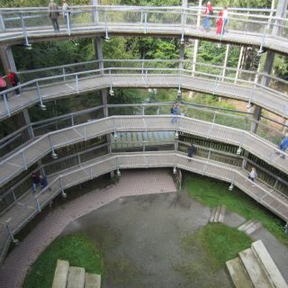 Weiter ging es Richtung Prora, wo sich der „Baumwipfelpfad“ befindet. Der Blick von der Aussichtsplattform „Adlerhorst“ war schon gigantisch in 40 Mtr. Höhe, direkt gegenüber die berühmte KdF-Anlage „Prora“, teils saniert und teils eben nicht. Bilder sind hier: